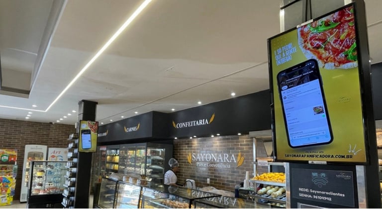 Sua marca presente dentro de empresas e pontos comerciais. Divulgue produtos e campanhas em telas instaladas em padarias, restaurantes e lojas parceiras.